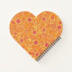 Herzförmiges Notebook mit Blumenmuster in Mandarine orange, gelb und dunkelrosa.