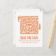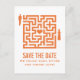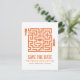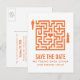Quirky und lustige Liebe Maze Save the Date Postcard in Mandarine orange mit einem Labyrinth in der Mitte und eine Braut und Bräutigam auf beiden Seiten, gewartet, um einander und Liebe zu finden. Dieses süße Design ist eine bezaubernde Wahl für die Ankündigung Ihrer bevorstehenden Hochzeit! Einfach anpassen, einfach die Details Ihrer Hochzeit in den Textfeldern angeben. Klicken Sie auf den Button "Anpassen", um weitere Personalisierungsoptionen zu finden.