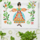 Mandarine Moderne Folk Art Blume Mädchen Geschirrtuch