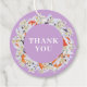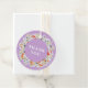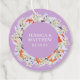 Elegante und schicke Gastgeschenk Hochzeit mit schönem Kranz der Mandarine. Blütenbotanische Illustration mit federempfindlichen Blume, blühenden Ästen und Zitrusfrüchten. Orange, Pastellfarben und Lila. Personalisieren Sie mit Ihren Namen und Datum.