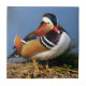 Mandarinenente von Männern am Ufer des Teiches Fliese