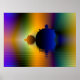Ein Fraktal-Art Mandelbrot-Design mit königsblauen, lila, gelb-orangen, schwarzen und aquamarinen Farben.