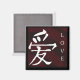 Chinesisches Manderin-Symbol für Liebe in rot und weiß. Der quadratische Magnet ist ein großartiges Geschenk für Liebes. Originelles Design von Cherie Haines