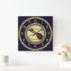Mandolin 01 ~ Musical Scroll ~ Gold/Navy Blue ~ Quadratische Wanduhr