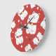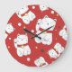 Maneki-Neko Katze, japanisches Doodle-Muster. Große Wanduhr