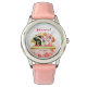 Kinderuhr aus Edelstahl mit rosa Lederarmband