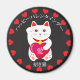 Niedliche und humorvolle Maneki Neko (Lucky Cat), die zum Valentinstag ein Herz mit "Liebe" halten. "Happy Valentine's Day" und "Maneki Neko (Lucky Cat)" auf Japanisch.