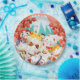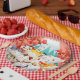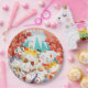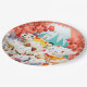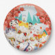 Teller mit niedlichen japanischen glücklichen Katzen, die im Frühjahr unter den Kirschblüten feierten, im Hintergrund auch der Fuji und eine Daruma-Puppe. Ideal für Katzenliebhaber oder japanische Fans!