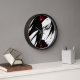 Manga Charakter Wanduhr mit einer Manga-Stil Schwarz-Weiß-Abbildung des Gesichts eines männlichen Charakters mit Wind geblasenen Haaren und roten Zahlen. Diese stilvolle Uhr wäre ein großes Geschenk für jemanden ein Anime / Manga-Fan.
