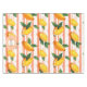 Dieses durchgängige Tischdekor mit seinen reifen, goldenen Mangos und frischen grünen Blätter, die über handbemalten, waagerechten Streifen in hellpfirsich und weiß angeordnet sind. Der Hintergrund hat eine strukturierte, bedrückte Oberfläche und schafft ein rustikales, sommerliches Gefühl, das natürlichen Charme mit künstlerischem Flair verbindet. Ideal für tropische, Bauernhäuser oder fruchtig inspiriert Designs mit einer warmen und lässigen Ästhetik.