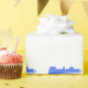 Manhattan, New York City, geschrieben mit einem Swash (Schwanz). Schriftart in Weiß und Blau. Originelles Textdesign.