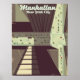 Manhattan New York City Travel Vintages Verkehrsplakat, das von einem hohen Wolkenkratzer-Gebäude aus betrachtet wird.