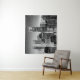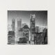Tapisserie in einer halbabstrakten Illustration von Manhattan in Schwarzweiß, beleuchtet mit Stadtlampen, unter einem sternförmigen Mitternachtshimmel