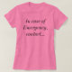 Witziger Zitat-T - Shirt. Können Sie sich darauf verlassen, dass Ihr Maniküre diese Nägel wieder in Form bringt - jederzeit, überall? Dann werden Sie dieses lustige Hemd Liebe Der Text lautet: "Im Notfall, kontaktieren...Mein Manikurist".