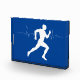 Mann, der die Silhouette von Läufern auf blauem Hi Fotoblock