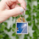 Mann, der mit einem Snowboard durch die Luft flieg Schlüsselanhänger
