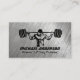Mann, der schwere Gewichte besetzt | Die Metallic Grunge Visitenkarte eignet sich hervorragend für Fitnessen. Ideal für Personal Trainer, Bodybuilder, Ernährungsberater und solche in ähnlichen Bereichen. Es empfiehlt sich, eine Option für dickes Papier oder Leinen zu wählen, um die Qualität Ihrer Visitenkarte zu erhöhen. ©2010 Joshua Martin
