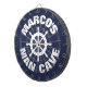 MANN-Höhle Dartboard des kundenspezifischen Neuheitsentwurfs See. Lustiger Seethemapfeilbrettentwurf mit personalisiertem Namen und altes Schiff drehen Logo. Cooles Wanddekorspiel für Mannhöhle der wirklichen Männer, Kabine, Fischrestaurant, Bar, Pub, Schlafsaalraum, Schlafzimmer, Küche, Restaurant, Café, Büro, Geschäft, Speicher, Boot, Schiff, Plattform, graden, wedding Party, Geschäft, Firma etc. Personalizable mit Familiennamen oder humorvolles Zitat. Fantastische Geburtstagsgeschenkidee für Freunde, Familie, Seemann, Bootskapitän, Kapitän, Fischer, Kinder, Vati, Onkel, Großvater, Bruder, Ehemann etc. Ziel mit Bullauge. Marineblau und Weißfarben.