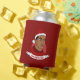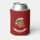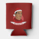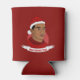 Kann kühler mit der Illustration eines afroamerikanischen oder hispanischen Mannes mit kurzem schwarzem Haar und einem roten Santa Claus Hut; in rotem Kreis auf rotem Hintergrund, mit anpassbarer Textvorlage für Ihren Namen oder Ihre Nachricht