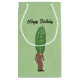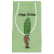 Diese Geschenktasche ist hellgrün mit einem lustigen Mann in braunem Anzug und roter Krawatte mit einem großen grünen Haufen für einen Kopf mit einem überraschend aussehenden Gesicht. Passen Sie den Geburtstagstext von Happy mit der Vorlage an.