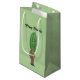 Mann mit großem Pickle Kopf überrascht Gesicht grü Kleine Geschenktüte