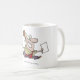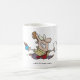 Ein Mann, der mit Kaffee und einem Stück Papier läuft. Dieses Design sieht auf dieser Tasse wirklich effektiv aus