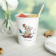 Ein Mann, der mit Kaffee und einem Stück Papier läuft. Dieses Design ist wirklich effektiv für diese Papieraufnahmen
