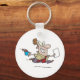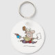 Ein Mann, der mit Kaffee und einem Stück Papier läuft. Dieses Design wirkt auf diesem Schlüsselanhänger wirklich effektiv