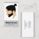 Diese personalisierbare Visitenkarte zeigt Desteis Abbildung eines Männerprofils mit modernem Stil. Der Mann hat schwarz langes Haar, das auf einem Knochen auf dem Kopf gebunden ist (Mann knon). Der Mann hat auch einen kurz rasierten schwarzen Bart. Auf der Vorderseite gibt es personalisierbare Textbereiche für einen Namen und Beruf, auf der Rückseite der Karte gibt es Platz für weitere Informationen wie Adresse, Telefonnummer und Website-URL.
