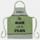 Comictext "The MAN with the PLAN" auf einem Hintergrund von Avocado grüner Leinen und grünem Gingham Karo kariert und in Schwarz geschnitten. Jeder Mensch hat einen "Plan" kartiert in seinem Kopf, wenn er zum Grillgrill geht, was zu kochen zuerst, wie lange, etc. Es ist wie eine Kontrolle. Weil er der Grillmeister ist! Und Gott helfe jeder Ehefrau, die raus geht und ihm anders sagt! Er wird diese Schürze Liebe, die nur bestätigt, was er bereits weiß. Er ist der Mann und er hat den Plan! Er wird die Liebe tragen, wenn Freunde zum Grillen kommen! Großartiges Geschenk für den Vatertag oder seinen Geburtstag.