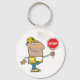 Ein stehender, der ein Stoppschild hält, um den Verkehr zu steuern. Dieses Design sieht auf diesem Schlüsselanhänger wirklich effektiv aus