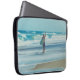 Mann mit Surfbrett am Strand Laptopschutzhülle