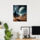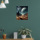 Mann stehend in der Wüste mit Blick auf Vollmond Poster