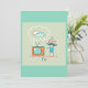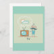 Ein Mann mit einem Schnurrbart, der neben seinem Fernseher stehend ist. Dieses Design sieht wirklich effektiv auf diese Einladung