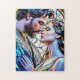 Dieses atemberaubende Werk erfasst einen wunderschönen Moment zwischen zwei Individuen durch lebhafte Farben, fette Formen und komplizierte Details, die an die bunte Glaskunst erinnern.