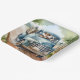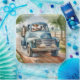 Ein alter Mann mit einem australischen Schäferhund in einem Retro-blauen LKW