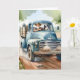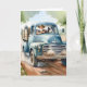 Alter Mann mit Hund in einem Retro-blauen LKW für Heimtier Verlust. Alle Texte können bearbeitet werden.