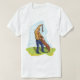 Ein Mann und sein Hund draußen spielen Fangen mit einem Stock. Dieses Design sieht auf diesem Mens T - Shirt wirklich effektiv aus