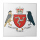 Das Wappen wird von einem Wanderfalke unterstützt, der aus der Zeit von König John I. von Mann stammt. und ein Rabe, wie in der Norse-Mythologie gezeigt, in behalt mit der Wikingergeschichte der Insel.