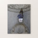 Die berühmte Manneken Pis Statue eines pinkelnden Jungen, oben gekleidet in der Ausstattung 1830 eines Soldaten, in Brüssel, Belgien.