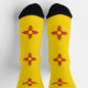 Treten Sie ein in den Südweststolz mit den Socken unserer Männer, die die Fahne von New Mexico tragen! Diese Socken sind für Komfort und Stil konzipiert und zeigen stolz die einzigartige Fahne von New Mexico, mit einem lebhaften gelben Feld mit einem roten Sonnensymbol in der Mitte. Dieses Emblem repräsentiert das reiche amerikanische und spanische Erbe des Staat und macht diese Socken zu einer herausragenden Ergänzung Ihres Schrankes. Egal, ob Sie am Arbeitsplatz sind, einen lässigen Tag ausgehen oder an einem besonderen Event teilnehmen, diese Socken verleihen Ihrem Outfit eine Touch neuen mexikanischen Stolzes. Diese aus hochwertigen Materialien gefertigten Strümpfe aus New Mexico sind haltbar, weich und für den ganzen Tag einsetzbar. Durch ihr unverwechselbares Design und ihre überragende Handwerkskunst sind sie ein perfekter Weg, um mit jedem Schritt Ihre Bewunderung für das Land der Verzauberung zum Ausdruck zu bringen.