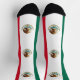 Fügen Sie Ihrem Kleiderschrank eine Touch mexikanischen Stolzes hinzu mit unseren stilvollen Herrensocken, die die Fahne Mexikos tragen! Diese Socken sind mit viel Liebe zum Detail gestaltet und feiern Mexikos reiche Geschichte und kulturelle Identität. Das Design zeigt stolz die ikonischen Trifarben Grün, Weiß und Rot mit dem nationalen Wappen in der Mitte und symbolisiert Mexikos Erbe und Einheit. Ob Sie sich für einen besondere Anlass anziehen oder Ihrem alltäglichen Outfit Flair verleihen, diese Socken verleihen Ihrem Kleid eine besondere mexikanische Touch. Diese aus hochwertigen Materialien gefertigten Strümpfe aus Mexiko sind für Komfort und Langlebigkeit konzipiert. Die lebhaften Farben und die solide Bauweise machen sie zu einem stilvollen Accessoire und zeigen mit jedem Schritt Ihre Liebe für Mexiko.