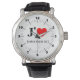 Männer Vintager schwarzer Lederriemen Uhr Herzchen
