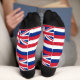 Treten Sie ein in den Hawaiianischen Stolz mit den Socken unserer Männer, die die ikonische Fahne Hawaiis tragen! Diese Socken zeigen stolz die Fahne Hawaiis, bekannt für sein auffallendes Design mit acht abwechselnden horizontalen Streifen in Weiß, Rot und Blau, die die acht größten Inseln Hawaiis darstellen. In der oberen links Ecke gibt es einen "Union Jack", der Hawaiis historische Krawatte in Großbritannien ehrt, und auf der rechten Seite einen roten, weißen und blauen Streifen mit acht weißen Sternen, die Hawaiis Status als 50. Staat der USA darstellen. Diese Socken sind aus hochwertigen Materialien gefertigt und genauso komfortabel wie stilvoll. Ob im Büro, beim Zuhause oder im Freien, sie sind die ideale Gelegenheit, um Ihre Liebe für Hawaiis reichhaltiges Kulturerbe und Inselgeist zu präsentieren.
