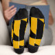 Treten Sie ein in den Stolz der Stadt mit unseren exklusiven Männersocken, die die Flagge von Baltimore City zeigen! Diese Socken sind mit viel Liebe zum Detail gestaltet und bezeugen das einzigartige Kulturerbe und die kulturelle Bedeutung der Stadt Baltimore. Das Design der Flagge zeichnet sich durch ein auffallendes Muster von abwechselnden, schwarzen und gelben Quadranten aus, mit einem Design des Schlachtmonuments in der Mitte. Dieses Symbol stellt die Verteidigung der Stadt während des Krieges von 1812 dar. Egal ob Sie sich für einen lässigen Tag ausruhen oder einfach nur beim Zuhause entspannen, diese Socken sorgen für eine authentische Touch des Baltimore City Flairs. Die Socken der Baltimore City-Fahnen aus hochwertigen Materialien sind für Komfort und Langlebigkeit konzipiert. Das dynamische Design und die robuste Bauweise machen sie zu einem Favoriten in Ihrer Socketschublade, sodass Sie mit jedem Schritt Ihren Stolz auf Baltimore City zeigen können.