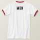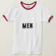 Men Text oder Name oder Word mit Schwarz-Text und The Style ist ein Ringer-T - Shirt, der Farbtyp ist weiß/rot und der Formattyp ist Erwachsene 2x.