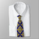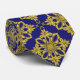 Diese dunkelblaue Krawatte hat ein goldenes Blumenmuster.