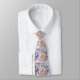 Die Krawatte dieses Herrenanzugs ist in einem schönen, blauen Mehrfarbenprint-Design dargestellt. Passen Sie dieses Objekt an oder kaufen Sie, wie es ist. Lizenzierte Printwerbung