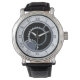 Ein männliches Uhrendesign mit Gängen über einem schwarzen Hintergrund und attraktiven römischen Zahlen.