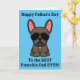 Franchise, zeigen Sie Ihrem Vater etwas Liebe diesen Tag des Vaters mit einer personalisierten Karte nur von Ihnen. Die Nachricht auf der Vorderseite der Karte lautet: "Glücklicher Tag des Vaters bis zum besten Franzosen-Vater aller Zeiten!" In der Nachricht heißt es: "Ich Liebe dich mehr als Spaziergänge, Glücklicher Vatertag." Das Design zeigt eine niedliche Cartoon-Darstellung eines männlich-braunen französischen Bulldoggen mit blauem Kragen und schwarzer Aviatorsungbrille. Schriftart- und Hintergrundfarbe ändern und durch Auswahl von "Klicken Sie, um weitere Anpassungen vorzunehmen" ändern.